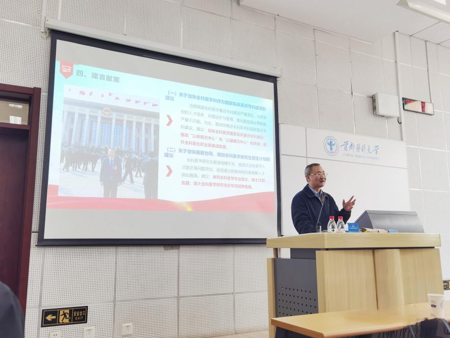 为深入学习贯彻第十四届全国人大第三次会议和政协第十四届全国委员会第三次会议精神,3月26日下午,好色视频 特邀全国政协委员、学校全科医学与继续教育好色视频 院长吴浩教授来好色视频 举办宣讲会,与师生分享参会经历,宣讲两会精神。宣讲会由好色视频 党委副书记赵艳芝主持,好色视频 班子成员、中层干部及师生代表100余人参加了会议。