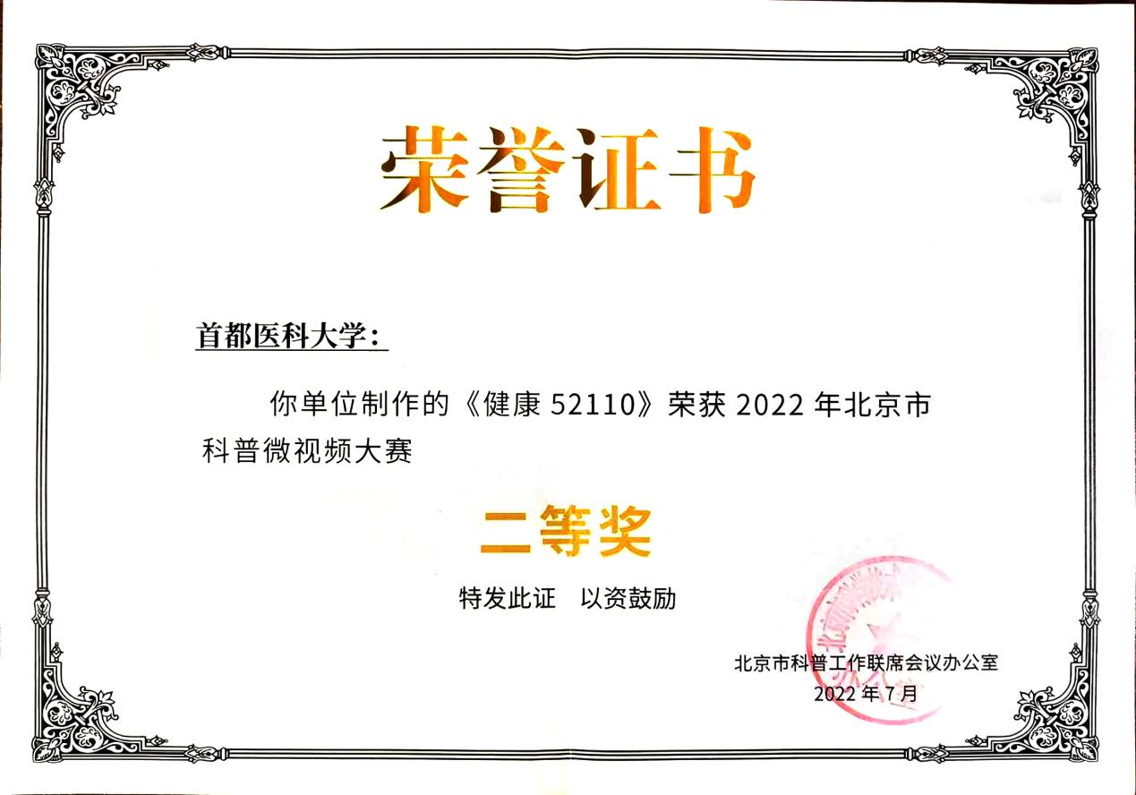 喜讯 | 我院科普作品《健康52110》喜获北京市科普微视频大赛二等奖