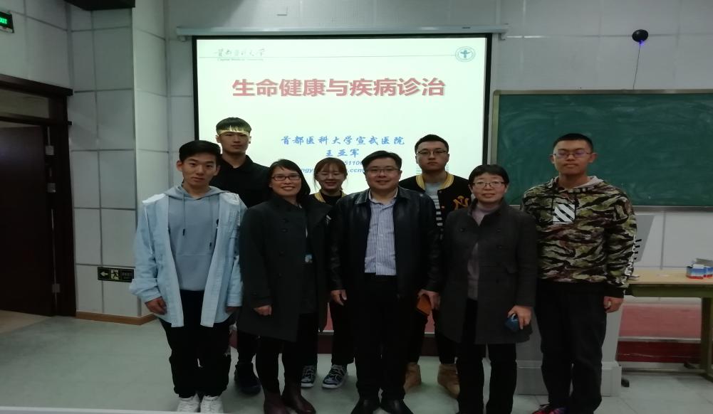 2019年11月11日,我系邀请宣武医院教育处处长、外科学博士、普外科副主任医师、王亚军副教授为2019级五年制临床医学(郊区定向)、2019级五年制临床医学(北京急救中心定向)的同学们上了一堂医学导论公开课。我系师生100余人参加了讲座。