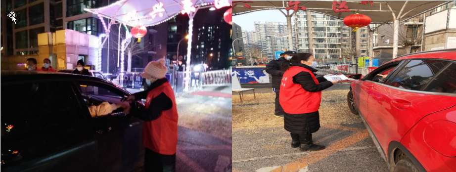 肖焕新老师配合社区防控做好车辆进出小区检查工作,结束一天的疫情防控志愿者工作后谈到,“一天虽然很累,但是很值得,天很冷,心很暖”。