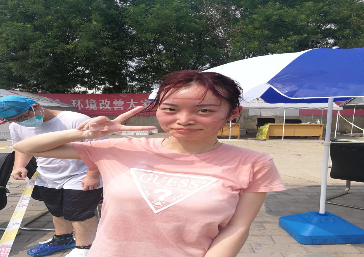 虽然在考试周,但我义无反顾地响应学校号召,报名参加到本次支援丰台区核酸检测排查的志愿活动当中。这个夏天,风的颜色是防护服和蓝天交织在一起的蓝白色,是每个抗击疫情工作者脸上的彩虹色,我要努力学习,将来成为一个乐观、优秀、善良的医务工作者!