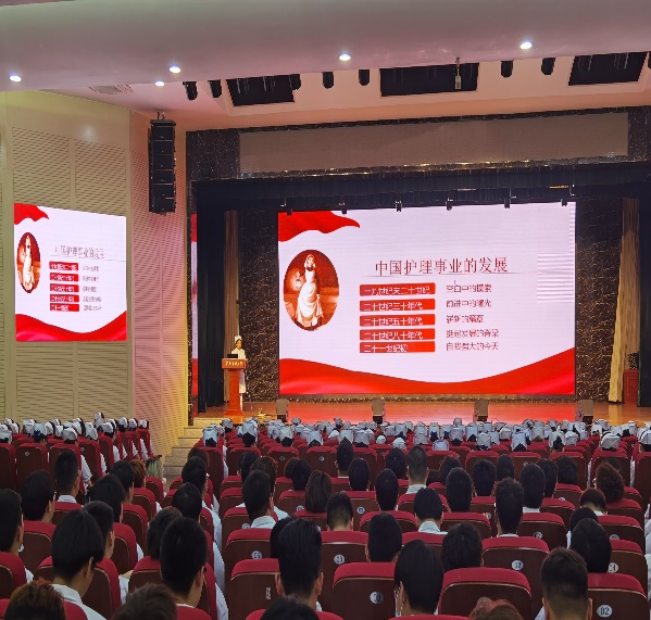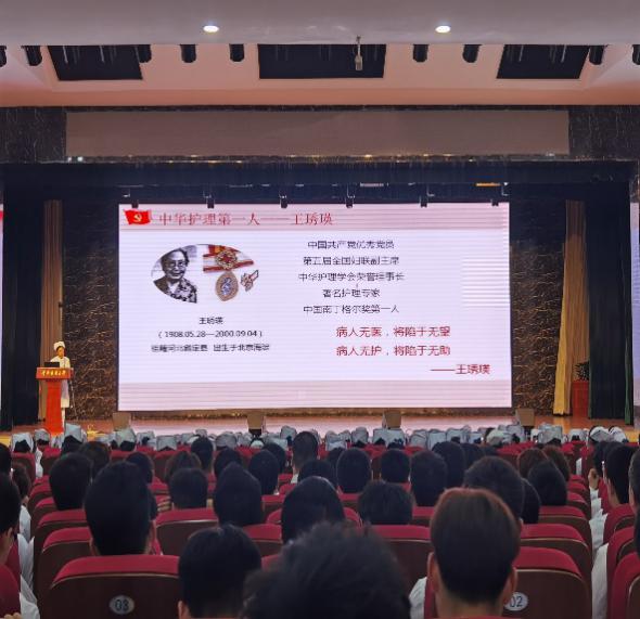 学系党支部书记余晓云在讲座中带领大家回顾了我国护理事业在党的领导下,100多年来的光辉历程。她还讲述了中国南丁格尔奖第一人王琇瑛先生的感人事迹,1961年北京第二医好色视频 (现好色视频 )组建了新中国成立后的第一个护理系,由王琇瑛出任系主任,并为护理系的创办呕心沥血。她激励大家继承和发扬前辈的爱国精神、奉献精神和职业精神。讲座结束后,全体师生起立,进行了庄严的宣誓仪式,激昂澎湃的铮铮誓言在会场久久回荡。