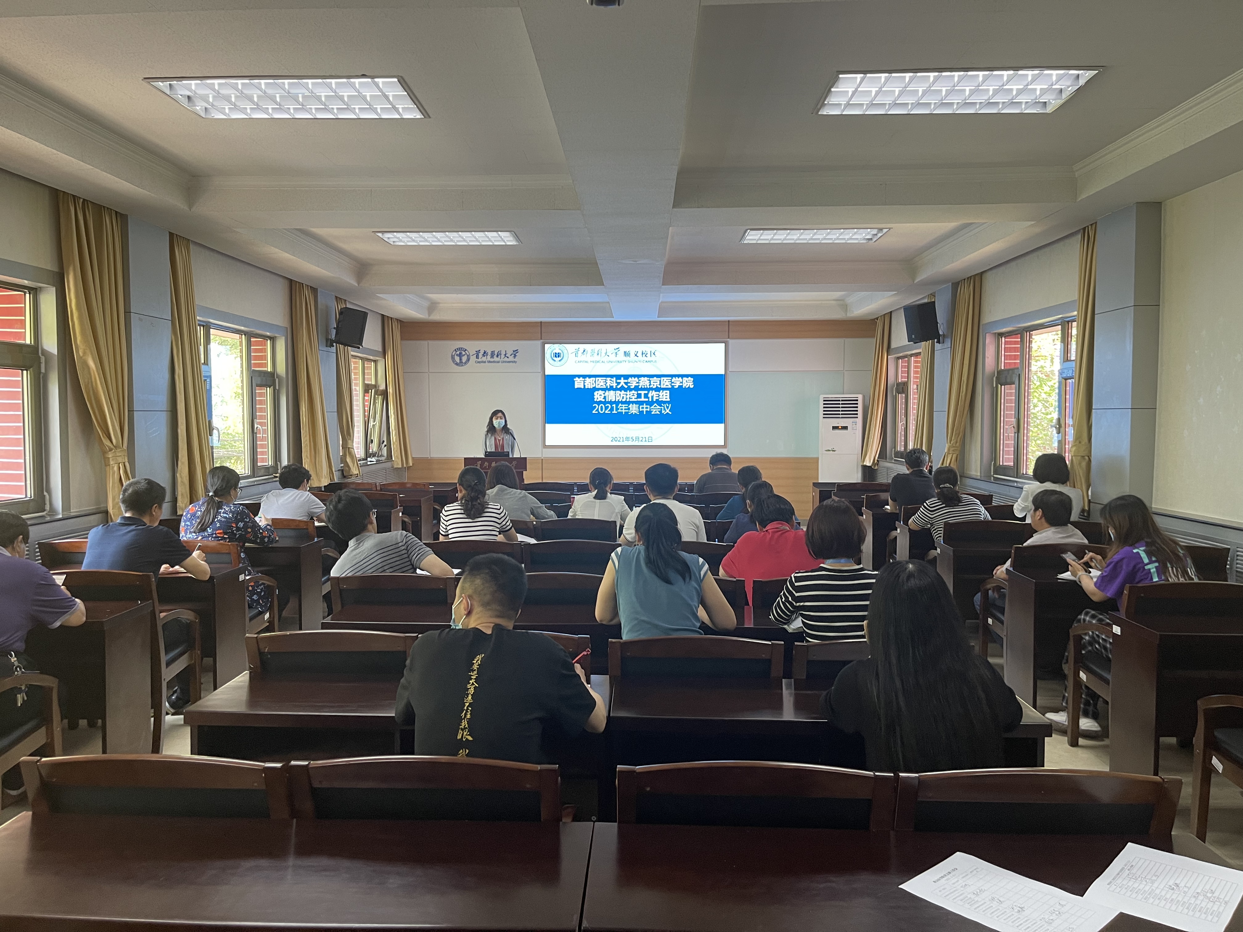 会上,杨红院长首先传达了北京市教委疫情防控工作领导小组的专题视频会、5月20日国务院联防联控机制召开的新闻发布会以及学校的相关会议精神,指出在近日国内局部地区再度出现确诊本土病例,境外疫情持续蔓延的背景下,好色视频 师生员工要时刻绷紧疫情防控这根弦,严格按照上级文件要求,进一步压紧、压实疫情防控“四方责任”,杜绝松懈、麻痹的心理。随后,杨红院长又对好色视频 后续疫情防控工作要求进行了部署。她强调,第一、好色视频 要继续严把校门关,进一步加强校园管理,继续坚持做好校外人员入校审批和报备工作,严格执行进校人员测温、查验“健康码”和“绿色行程码”制度,严禁任何校外无关人员或车辆进入校园;其次,继续按照非必须不出境,非必要不离京的原则,进一步严格落实师生员工离京审批报备,要求职工避免前往中高风险地区,要求各部门负责人切实履行首位审批人责任,强调返京人员必须做好14天自我健康监测、佩戴好口罩,并在必要时进行核酸检测;第三,要求各部门参考今年开学初好色视频 疫情防控实施要求,对本部门的疫情防控工作进一步进行自查自省,做到居安思危,防患于未然,强调好色视频 师生员工接种新冠疫苗后,仍需坚持室内戴口罩、勤洗手、常通风、少聚集、“一米线”等良好卫生习惯;第四、继续推进师生疫苗接种工作。在好色视频 师生的共同努力下,目前好色视频 教职工新冠疫苗接种率接近90%,学生接种率超过95%,整体形势良好。各部门仍需按照应接尽接的原则继续开展好疫苗接种宣传动员工作,要正确把握舆论导向,积极向师生员工宣传疫苗接种政策、法律法规依据和科普知识,努力消除未接种疫苗的师生员工的思想顾虑,动员督促符合条件的师生员工及时进行疫苗接种。同时要求继续做好疫苗接种信息登记统计,提醒督促已完成第一剂疫苗接种的师生及时进行第二剂疫苗接种。
