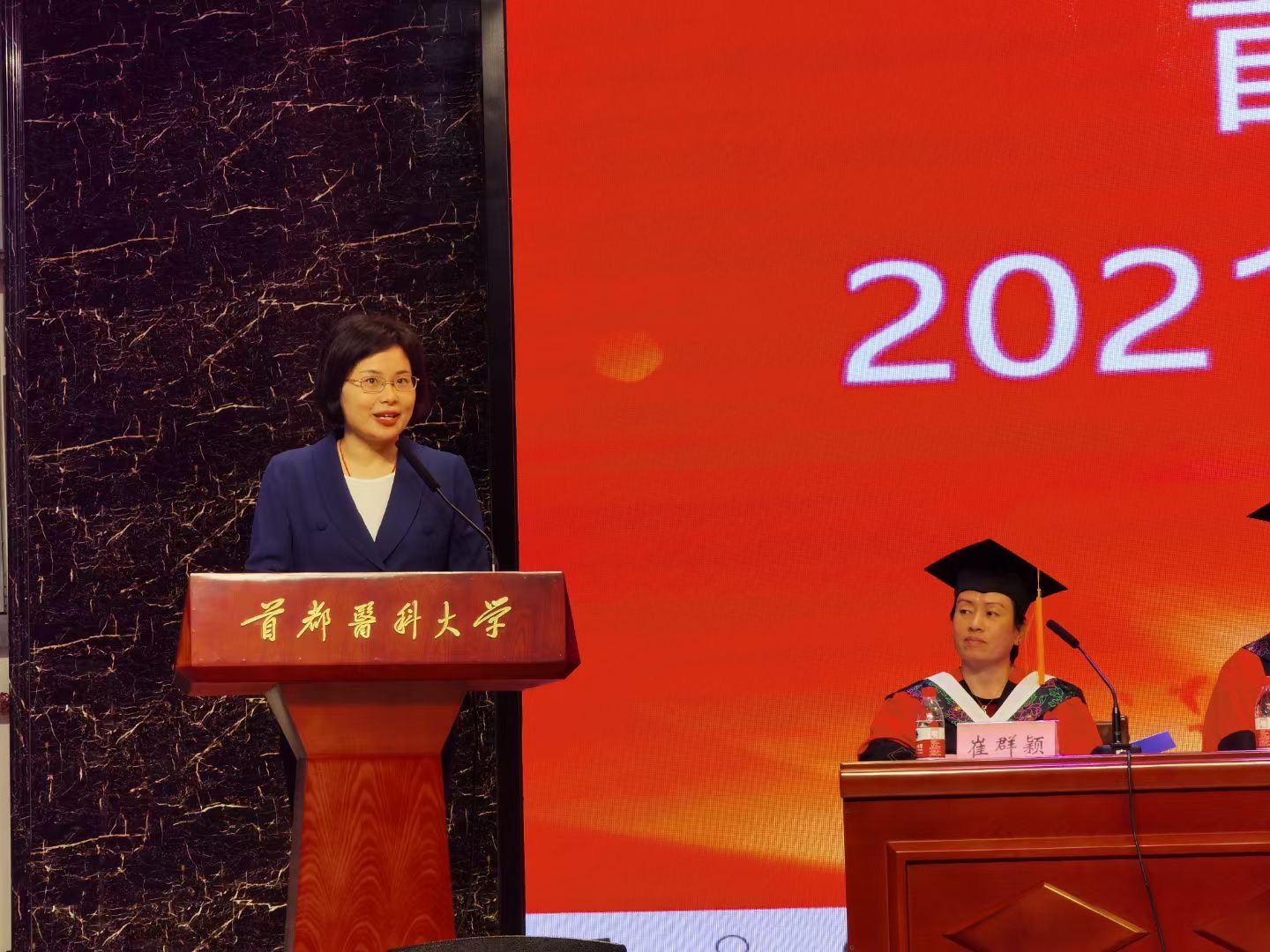 好色视频 副院长赵艳芝宣读学位授予决定。2021年,好色视频 我院共有208名学生获得学士学位,469名高职高专毕业生获得毕业证书。