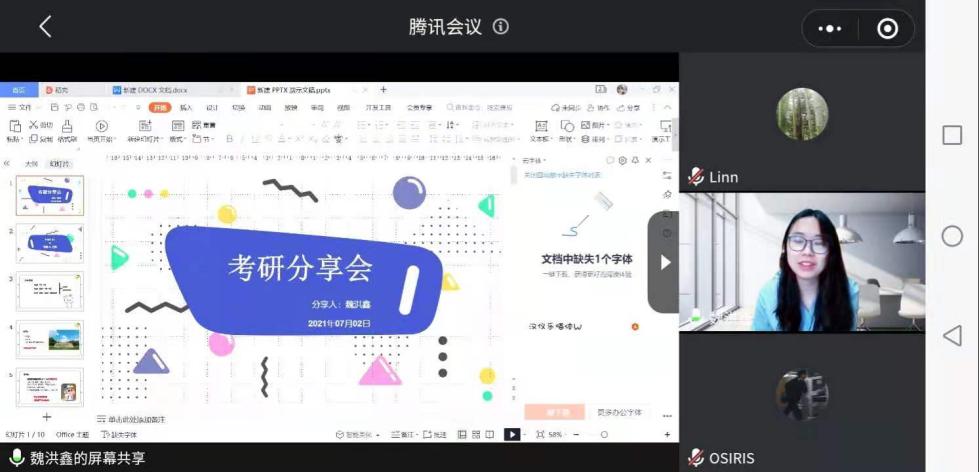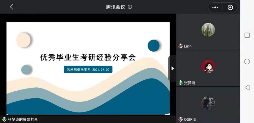 7月2日,医学影像学学系召开线上“优秀毕业生考研经验分享会”,邀请13级预防医学专业魏洪鑫、陈镇两位优秀毕业生向18级和19级医学影像技术专业的同学们分享她们的考研学习经验。