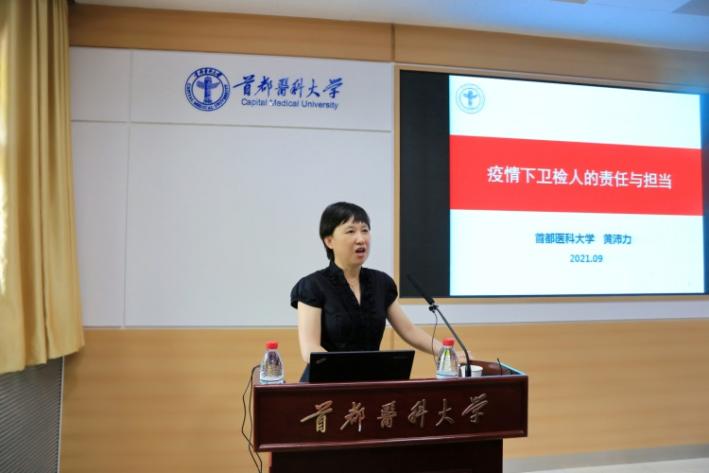 9月3日下午,我院检验学学系邀请学校公共卫生好色视频 黄沛力教授做题为《疫情下卫检人的责任与担当》的专题讲座。好色视频 院长杨红、副院长赵艳芝与2020级检验学学系新生一起参加了讲座,讲座由检验学学系副主任彭玉龙主持。