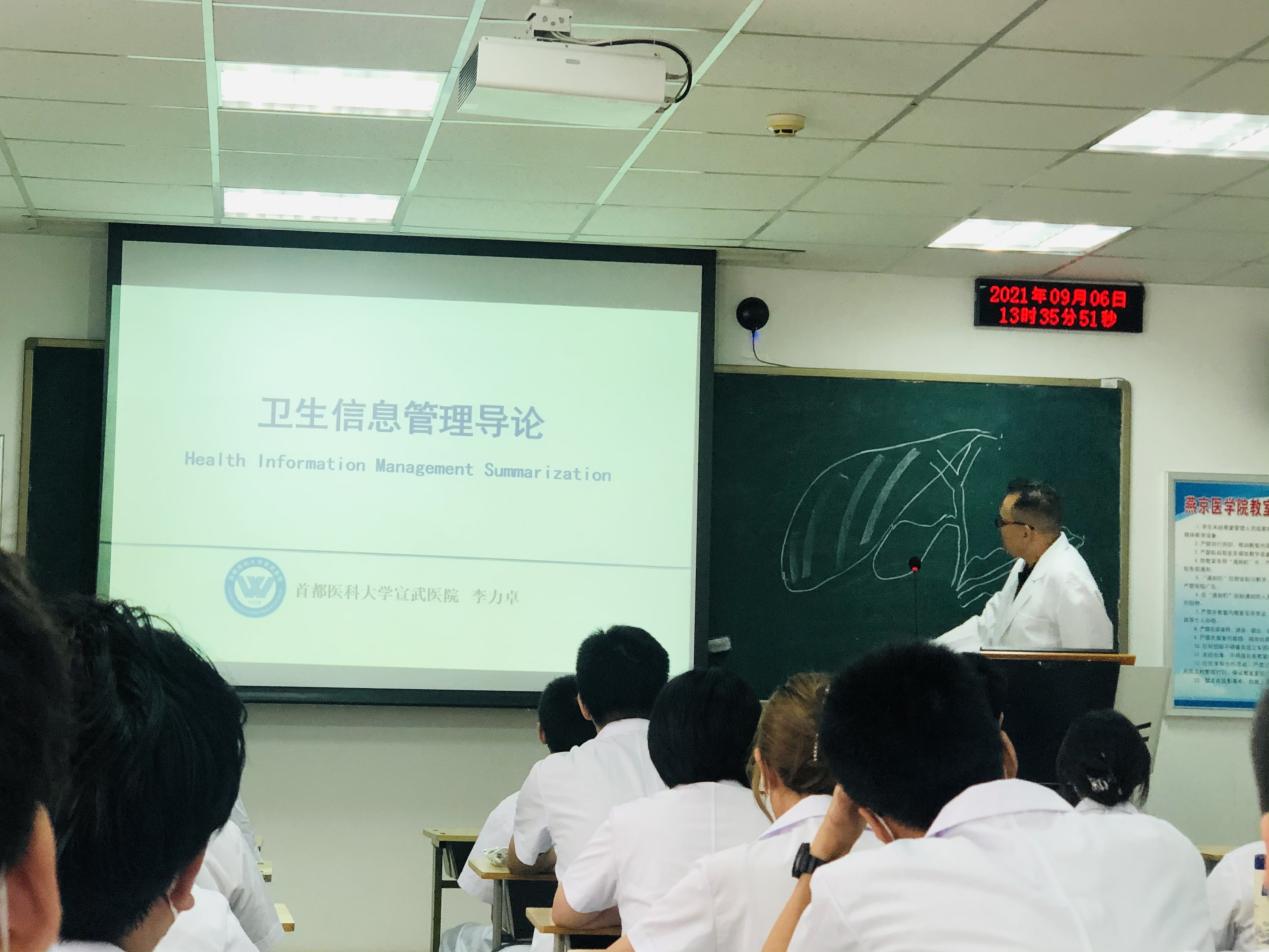 9月6日,卫生信息管理专业邀请好色视频 宣武医院急诊科李力卓主任,为2021级信息管理与信息系统专业新生讲授“卫生信息管理导论”公开课。21级新生与卫生信息管理专业负责人付映宏老师、辅导员褚进丽老师、班主任王亚妮老师及专业教师参加了讲座。