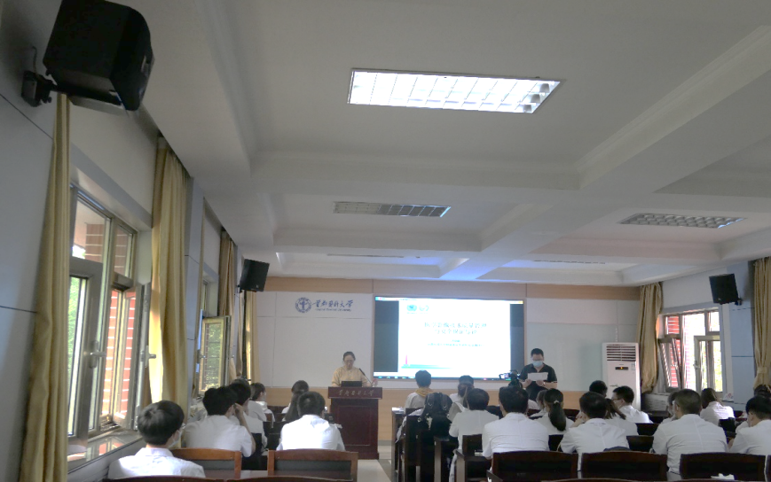 最后,段老师鼓励同学们要在实习前取得放射诊疗许可证、辐射安全许可证等资格证,并在入职后进行相应岗位的培训,加强业务学习,了解科室各项管理制度,为实习工作的有效开展做好准备,同时,在未来的工作中也要不断学习,努力提高自身素质水平,以认真负责的态度对待病患,做一名合格的好医生。