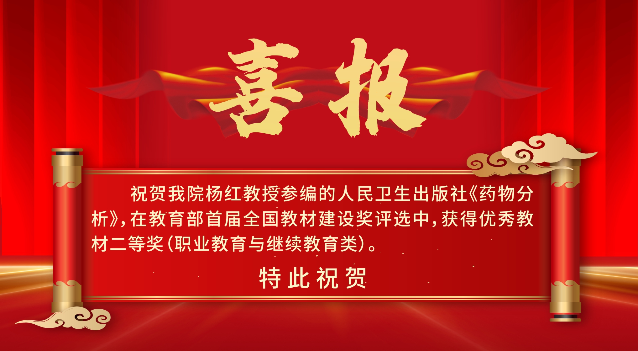 为深入贯彻习近平新时代中国特色社会主义思想和习近平总书记关于教材建设的重要指示精神,落实党中央、国务院关于实施教材建设国家奖励制度的决策部署,国家教材委员会组织开展了首届全国教材建设奖评选工作,奖励名单于10月12日重磅发布。我院杨红教授以第一副主编身份参编的人民卫生出版社《药物分析》,在教育部首届全国教材建设奖评选中,获得优秀教材二等奖(职业教育与继续教育类)。