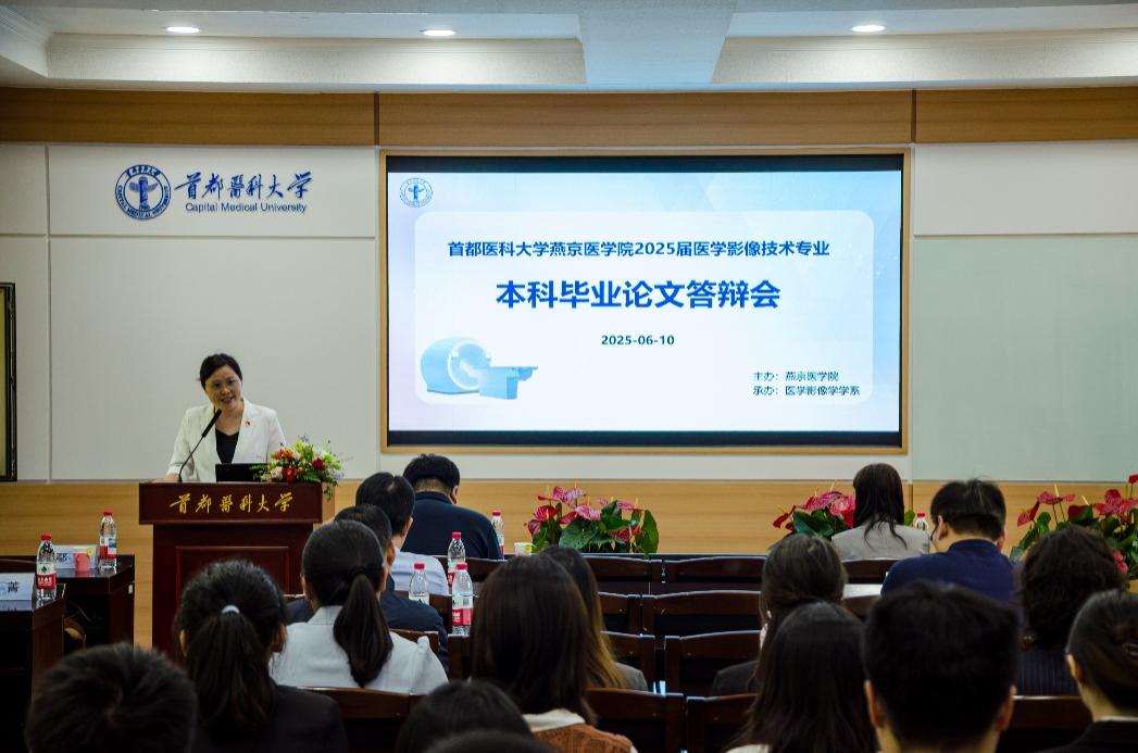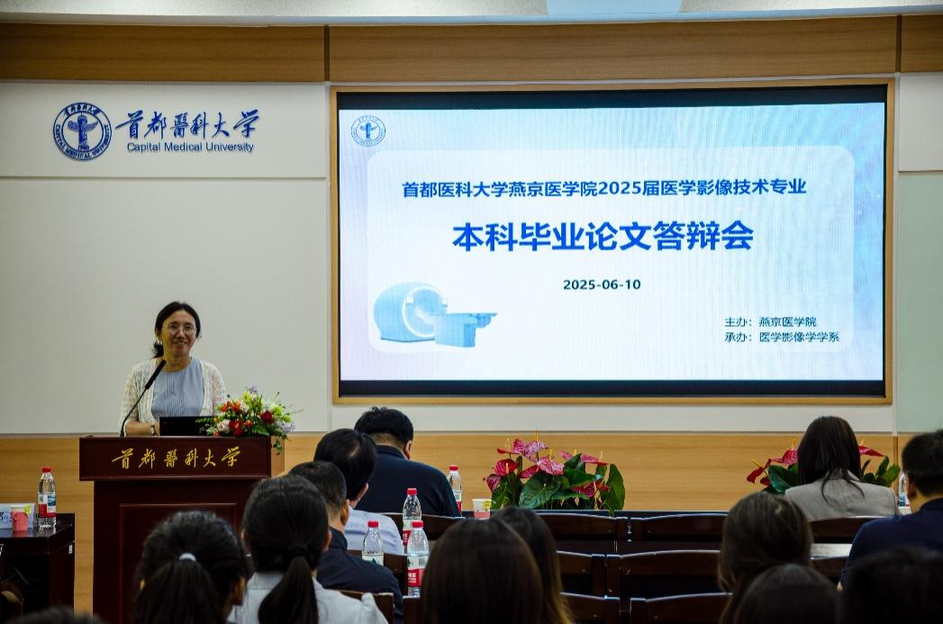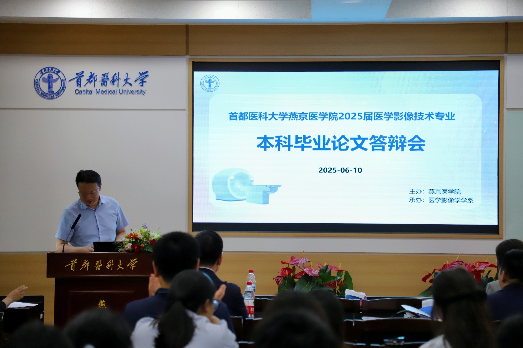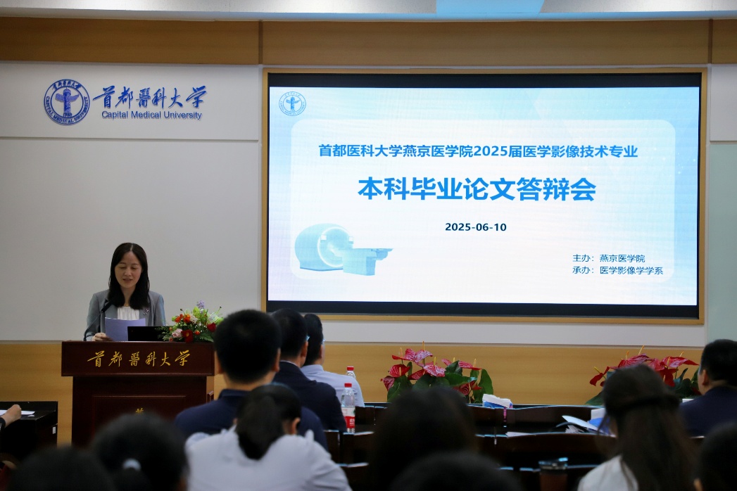 最后,胡玲静代表学系对参会领导、专家表示诚挚的感谢,同时对通过答辩的毕业生表示热烈祝贺,她希望同学们继续保持勤奋好学、深入思考的劲头,致力于成为医学影像技术领域的创新型人才,凭借自身的智慧为国家的发展添砖加瓦,以勇于探索、积极进取的态度为社会贡献力量。
