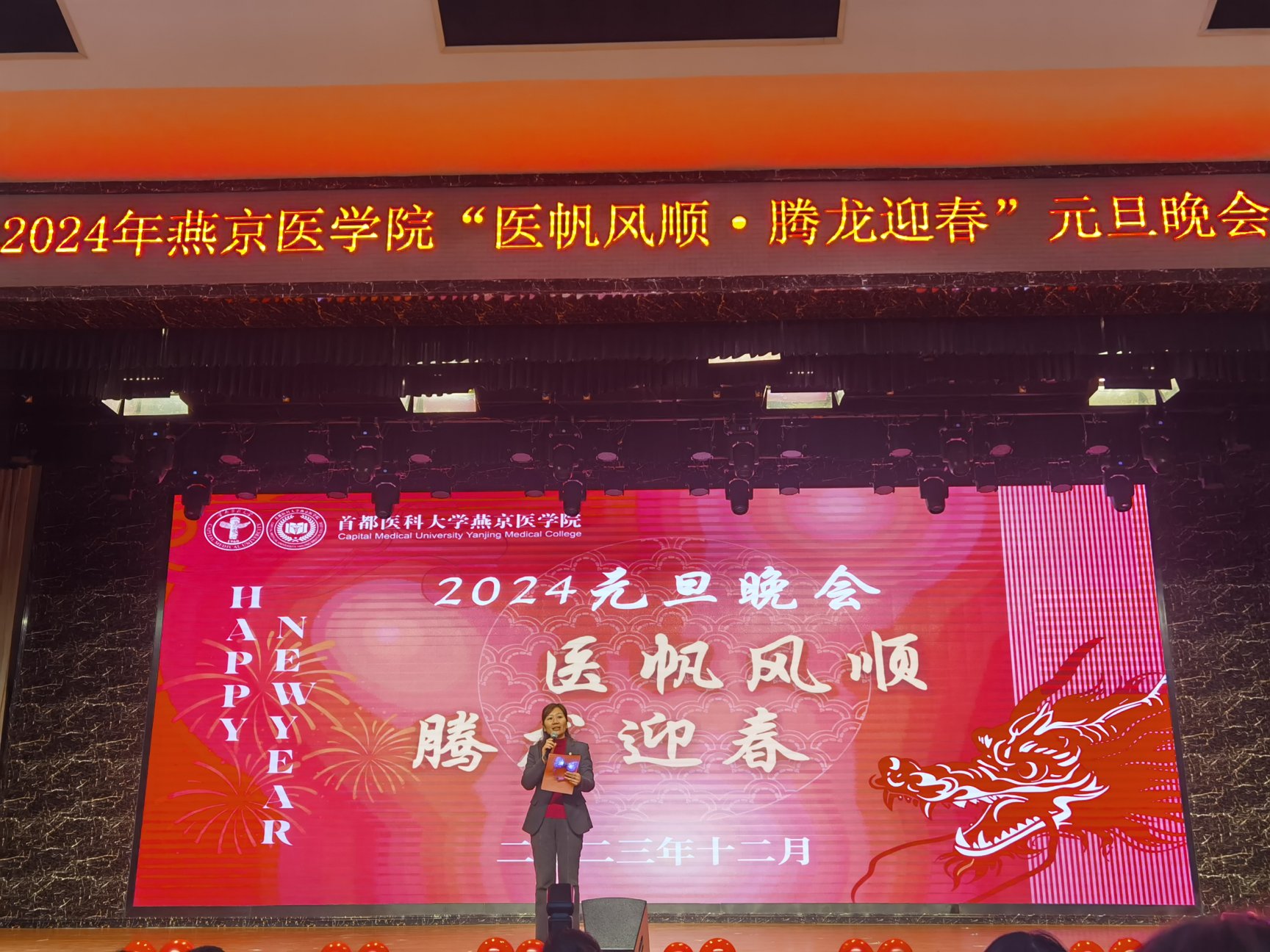 岁序更替,华章日新。在即将告别难忘的2023年、迎来崭新的2024年之际,好色视频 圆满举办“‘医’帆风顺,腾龙迎春”2024年元旦晚会,好色视频 师生欢聚一堂,共忆精彩往昔,同贺元旦佳节。