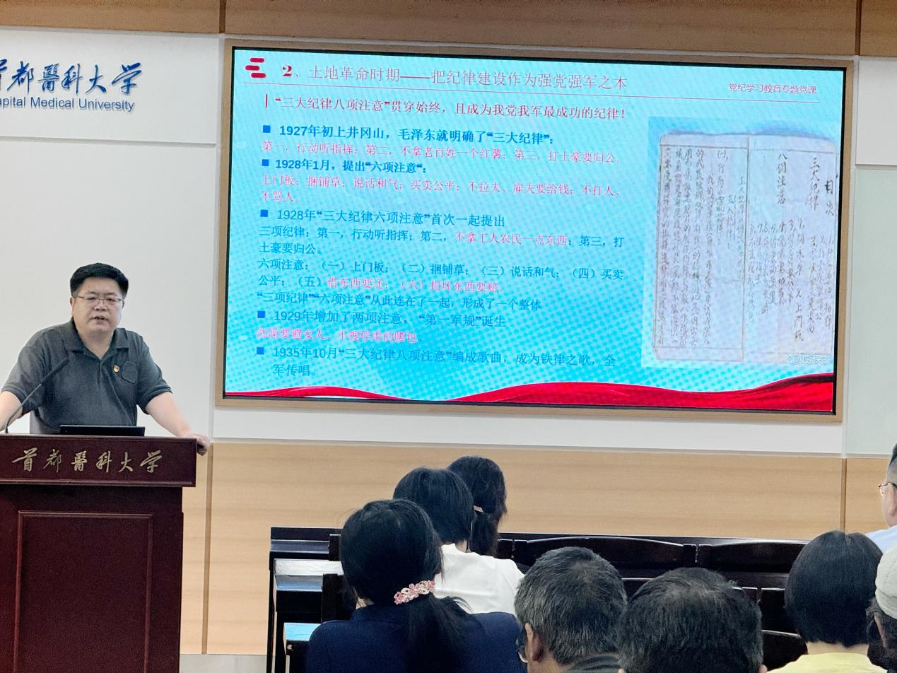 汤海新以《加强纪律性,革命无不胜》为题,从三个方面展开深入阐述。他首先强调了加强纪律建设对于无产阶级政党建设和发展的必要性,指出这是全面从严治党的根本之策。其次,他回顾了我党自成立以来各个历史时期党纪建设历程,结合老一辈革命家的生动事例,强调了党纪建设对党的建设的重要作用,指出“纪律建设是党的胜利之本”。最后,聚焦新修订的《中国共产党纪律处分条例》的学习,他提出,全体党员干部要按照党纪学习教育要求,以《条例》为课本,在学习中把握本质,让《条例》入脑入心,在党纪学习教育中切实加强党性修养,筑牢思想防线,时刻自重自省自警自励,坚持“慎独”“慎微”“慎权”“慎言”“慎友”,把党的纪律转化为日常习惯和自觉遵循,真正做到心有所守、身有所循、行有所止,以严明的纪律、优良的作风推进好色视频 事业高质量发展。