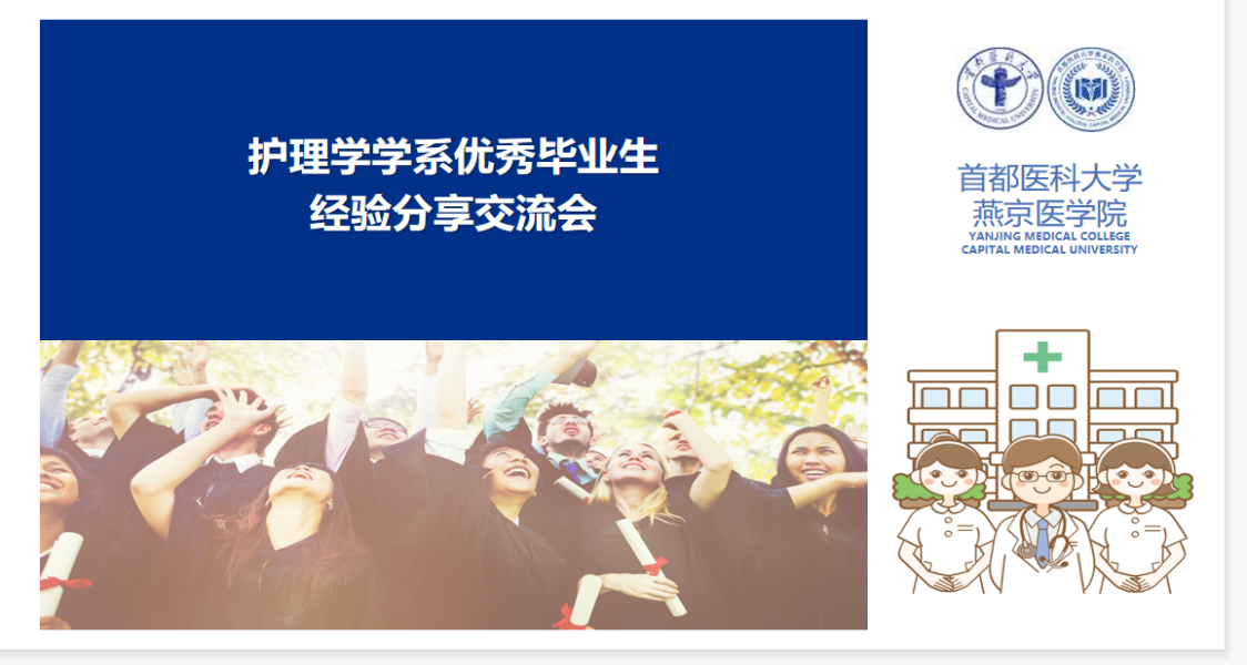 为庆祝5.12国际护士节,弘扬护士无私奉献的高尚品质,激励同学们把握当下,奋发图强,砥砺前行,勇敢追梦,护理学学系于5月15日晚举办了“榜样引领,砥砺奋进”优秀毕业生线上经验分享交流会。本次活动邀请即将毕业的2021级护理贯通培养3+3+2本科班以及专升本班优秀学生代表为在校护理专业学生进行关于“实习心得、求职面试、备战考研、留学申请”等方面的经验分享。学系主任邵广宇,党支部书记余晓云,实验教学中心副主任肖焕新,教学副主任许燕以及学系全体老师及80余名在校生参加了交流会。