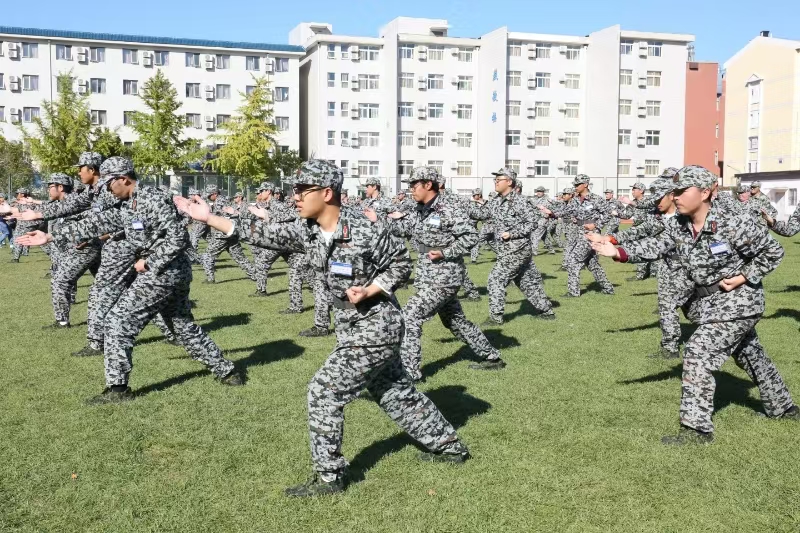 在军训成果展示中,男生连的擒敌拳表演,口号响亮,气势磅礴;女生连分两队进行展示,第一队的擒敌基本动作,整齐划一,行云流水;第二队的匕首操,果敢刚毅,英姿飒爽;由教官和学生助理共同完成的基本动作表演,干脆利落,堪称典范。最后,600余名学子用身体拼成了“中国“ “1949”“2024”和爱心及中国地图的字样与图样,为祖国的75周年生日献上了独特的一份礼物。
