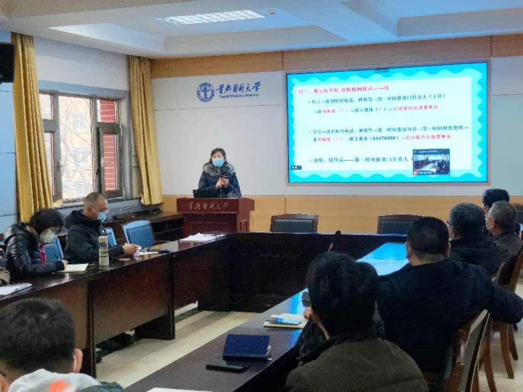 杨红院长结合目前北京市疫情形势最新研判,对好色视频 《好色视频 新型冠状病毒感染肺炎疫情应急处置预案》、《好色视频 新型冠状病毒感染肺炎疫情应急处置细则(案例版)》进行了解读,通过校园中出现确诊病例、密接、次密接等虚拟案例组织现场和线上与会人员对校园防控中各个环节和相关注意事项进行了桌面推演。