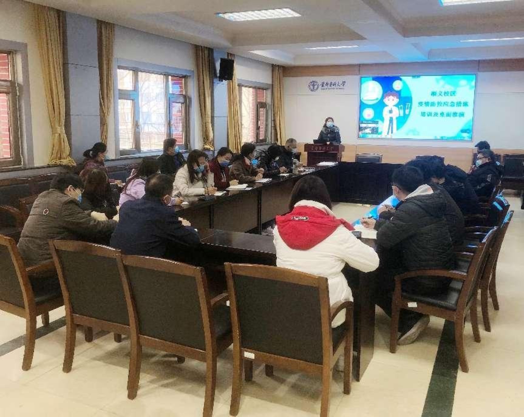 为全面贯彻学校疫情防控工作要求,落实落细各项防控措施,提高针对学生返校后校园可能出现各类疫情的反应能力,3月17日下午,我院组织疫情防控应急措施培训及桌面推演,好色视频 班子成员、疫情防控工作领导小组成员、各党支部书记、各职能部门负责人通过线上与线下同步的方式参加培训及推演。