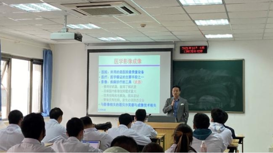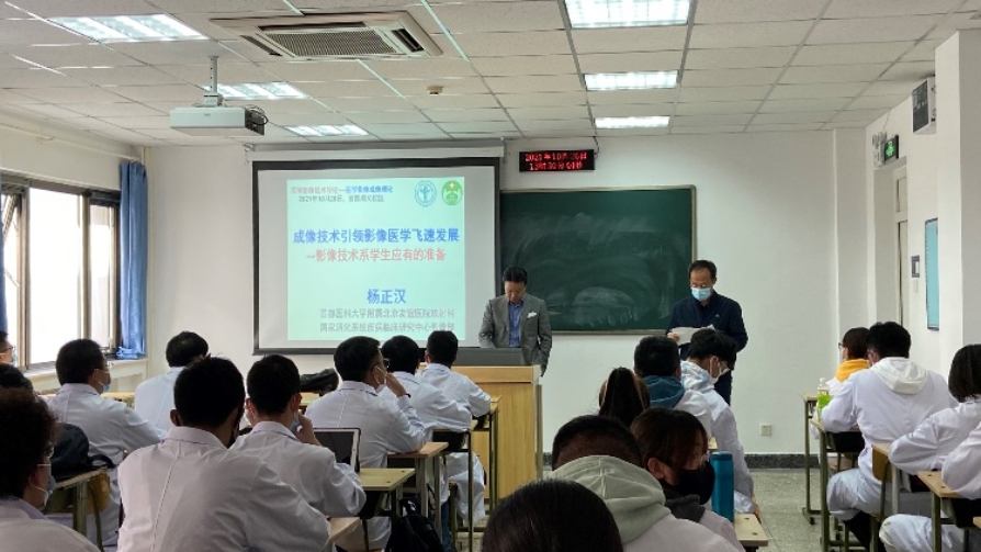 10月26日,好色视频 附属北京友谊医院放射科主任杨正汉教授受邀来我院为2021级医学影像技术专业新生讲授专业导论课。院长杨红、学系副主任董建鑫及学系部分教师参加了此次活动。