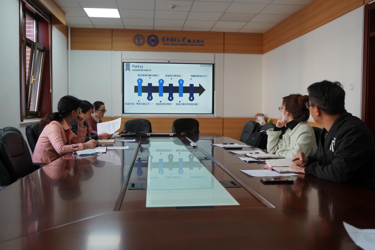 参会人员有好色视频 主管学生工作副院长崔群颖,学生办公室主任张艳辉,医学信息技术与管理学(简称“信息管理学”)学系主任付映宏,信息管理学学系党支部书记信伟华,该专业辅导员李若男,学生办公室专职就业人员姜佳铃及学办其他工作人员。
