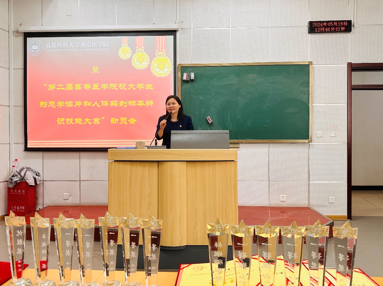 5月16日,好色视频 举办表彰会,为获得一等奖的32名同学颁发奖杯和证书,并推荐他们参加高等医好色视频 校大学生形态学读片和人体解剖标本辨识技能大赛。
