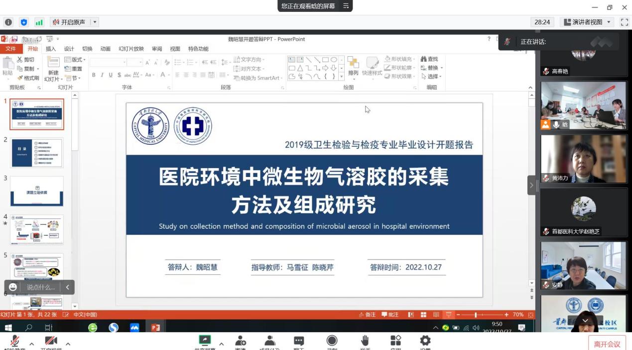近日,我院检验学学系以线上和线下会议相结合的方式,顺利完成2019级四年制卫生检验与检疫专业的开题报告工作。