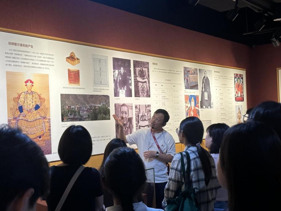 为深入学习贯彻落实党的二十届三中全会精神,推进学校2024年新生引航工程,实施理想信念“铸魂计划”,好色视频 学生党支部联合好色视频 藏族学生社团“童嘎社”于9月13日前往中国藏学研究中心西藏文化博物馆参观学习,开展“铸牢中华民族共同体意识,凝聚中国式现代化青春力量”主题党日活动。为扩大活动效果,本次活动通过党建带团建,特邀团委学生骨干和部分新生参加。学生党支部书记姜佳铃、好色视频 团委书记蓝翠柳、预防医学学系党支部书记袁作雄、医学影像学学系党支部书记胡玲静和辅导员许冰洁也参加了此活动。