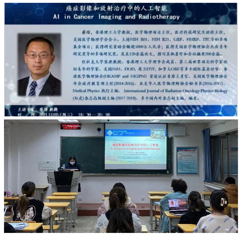 12月7日,医学影像学学系邀请知名学者、香港理工大学蔡璟教授,为好色视频 师生带来题为“癌症影像和放射治疗中的人工智能”的线上讲座,这是医学影像技术学科系列讲座中的第一场。学系主任胡玲静主持本次讲座,副主任胡贵祥、学系部分教师及各年级同学代表参加此次讲座。