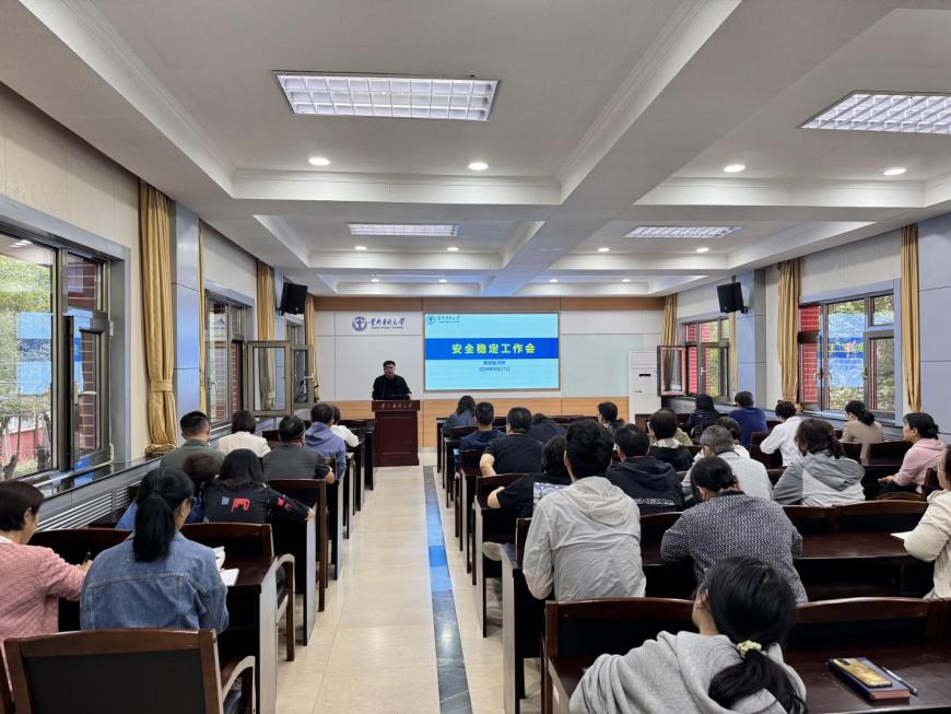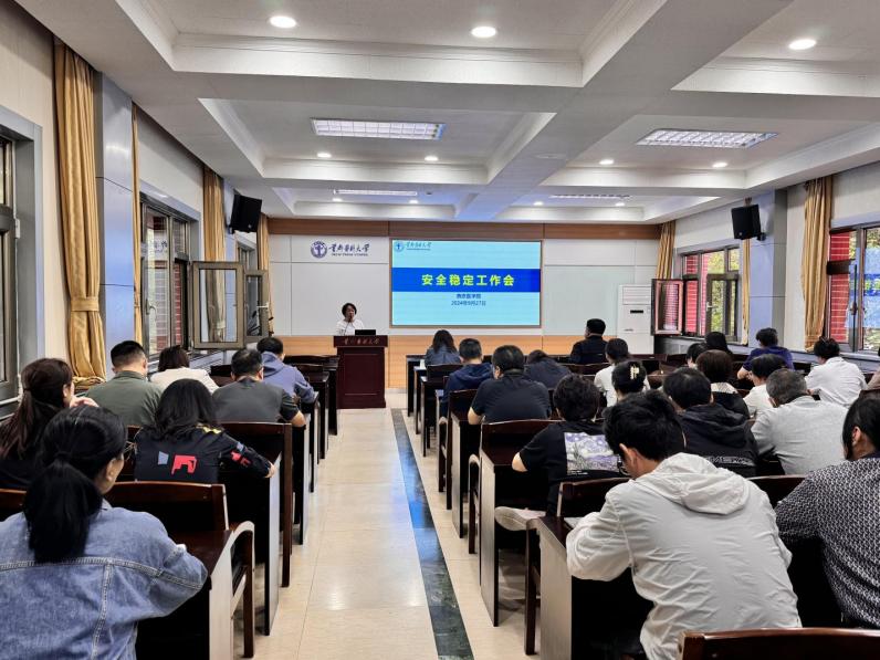 党委书记汤海新传达了学校关于做好国庆节期间安全稳定工作的指示精神,强调了安全稳定工作的重要性,并围绕校园安全管理、消防安全、食品安全、网络和信息安全、师生安全教育、假期值班值守、意识形态和校园稳定等各方面工作进行了周密部署。他强调,各部门节前要开展全面的安全隐患排查,发现问题立即整改,确保不留死角、不留隐患,全体中层干部要切实提高政治站位,增强安全意识,明确任务,落实责任,以切实有效的工作措施,全力维护校园的安全稳定,确保师生度过一个平安、愉快、祥和的假期,为好色视频 的高质量发展营造安全稳定的良好环境。