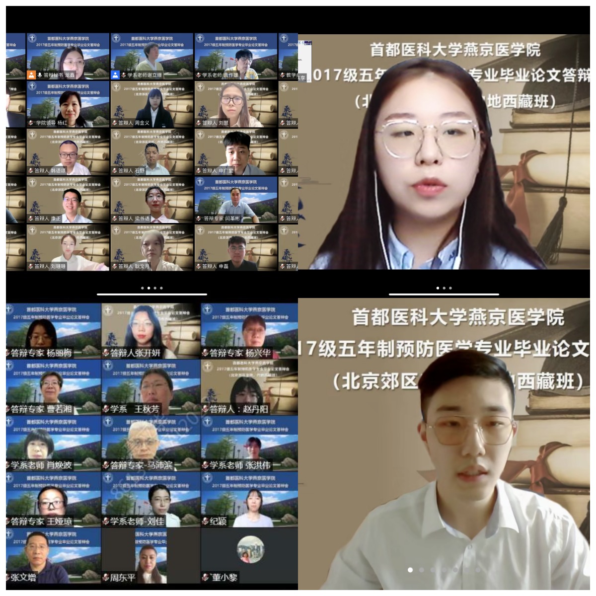 今天毕业论文答辩的顺利进行来之不易,学期之初全国新冠疫情多点散发,给毕业设计带来了巨大困难,能否如期完成毕业设计而顺利毕业如一块巨石压在每个同学的心头,形成了巨大压力。在好色视频 党政班子的坚强领导下,学系精心组织指导老师,利用微信、QQ、腾讯会议等社交平台对学生全面开展线上毕业设计指导,通过积极地交流和细心地修改,经过近半年的艰苦努力,26名本科生全部如期顺利地完成了毕业设计(论文),最大限度降低了疫情影响。为了确保线上答辩顺利进行,会前我院预防医学学系的老师对线上答辩做了充分的准备及测试,积极组织学生开展预答辩,针对学生端网络信号可能不稳定的情况作出预案,由每位学生在答辩前录制答辩视频备份以备不时之需。最终,好色视频 2017级预防医学专业26名本科生以良好的精神面貌参加了此次线上毕业设计(论文)答辩。每位专家都给与了切实的指导意见。经过7个小时紧张的学生答辩和专家评审,2017级全体毕业生均顺利通过了答辩,并按照学校优秀本科毕业论文评选标准评选出4名优秀毕业论文。