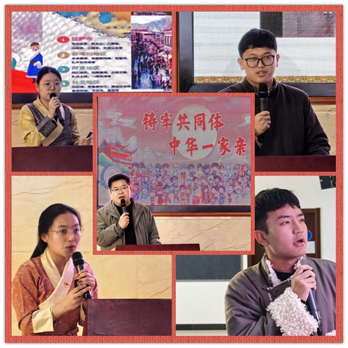 支部大会结束后,藏族学生党员格桑曲珍、达瓦桑姆和党委书记汤海新作为主讲人,带来“铸牢中华民族共同体意识”系列微党课。格桑曲珍以“我和我的家乡,我和我的祖国之铸牢中华民族共同体意识”为题,重点分享了新时代西藏的发展变化、从家乡来到首都求学之路上对于铸牢中华民族共同体意识的学习与实践感悟,号召在场青年学生以青春之我、奋斗之我,为民族团结和共同体意识的培养贡献自己的力量,共同书写新时代的辉煌篇章。