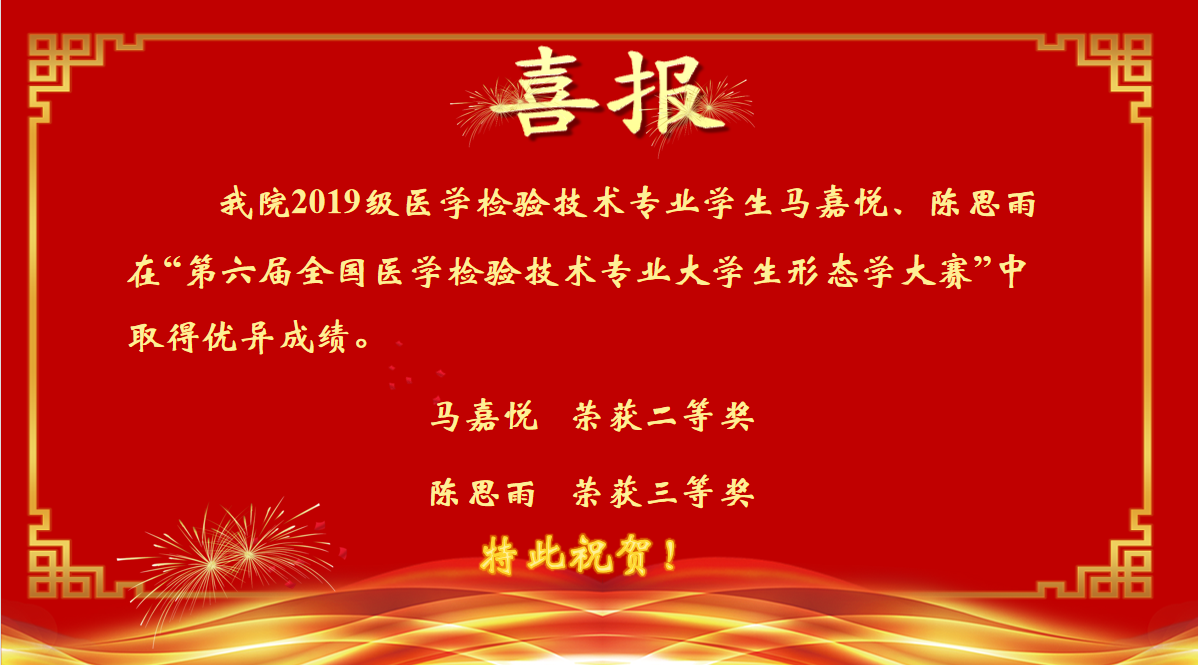 祝贺我院检验学学系多名学生在”第六届全国医学检验技术专业大学生形态学大赛“中取得佳绩。