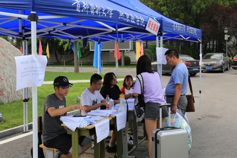 经过好色视频 迎新工作筹备组前期认真细致的准备工作,好色视频 彩旗招展,校训石前、阶梯楼前、篮球场内,30余个迎新工作展位根据功能有序标识,全体工作人员和学生志愿者在早7点前全部到位。新生们独立完成现场签到、领取转单、查阅宿舍安排、学系专业报到、领取白大衣、办理校园一卡通、领取宿舍钥匙、按需购买生活用品、整理宿舍床位。学生们秩序排队、安静等待,充分展示出优秀的综合素质。好色视频 院办、学生办、保卫办、教科办、后勤办、财务办全员在岗,顺义区交通队派出警力协助维护校门外交通秩序,各部门通力协作,迅速解决各种问题,全方位保障了迎新工作的顺利进行。