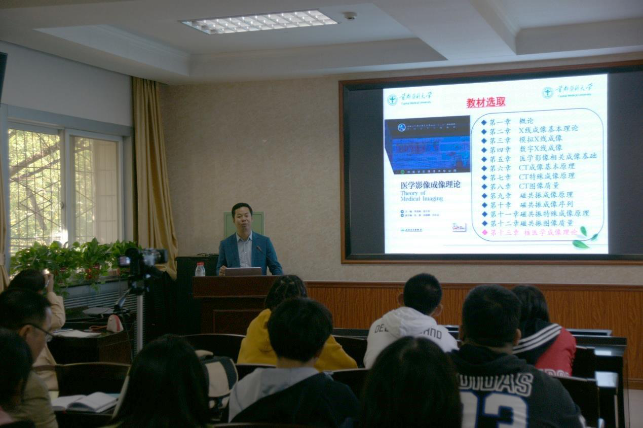 彭主任从课程的重要性、学习方法、医学影像主要成像设备的发展和原理等几个方面讲述了医学影像成像理论知识。讲座中,他结合临床的实际应用,为师生们分别展示了模拟X线、数字X线、数学血管造影、CT和磁共振等几种成像方式及不同医学影像的区别,让大家充分体会到随着医学影像成像技术的飞速发展,仪器越来越精准,从而给临床带来更及时、准确的诊断治疗。彭主任指出,医学影像技术的现状是数字化、智能化、共享化、全面化,未来影像新技术也带来了解剖学的新挑战,我们需要更深入地学习系统解剖学、局部解剖学、断层解剖学和活体解剖学的相关知识。
