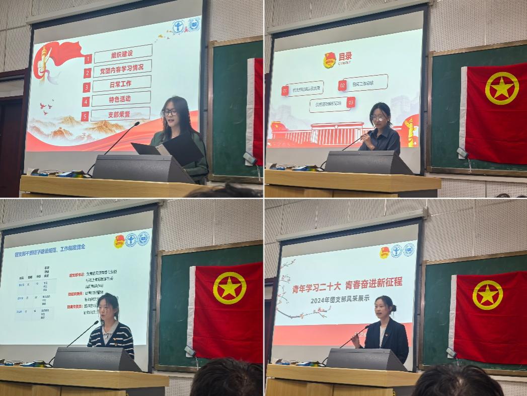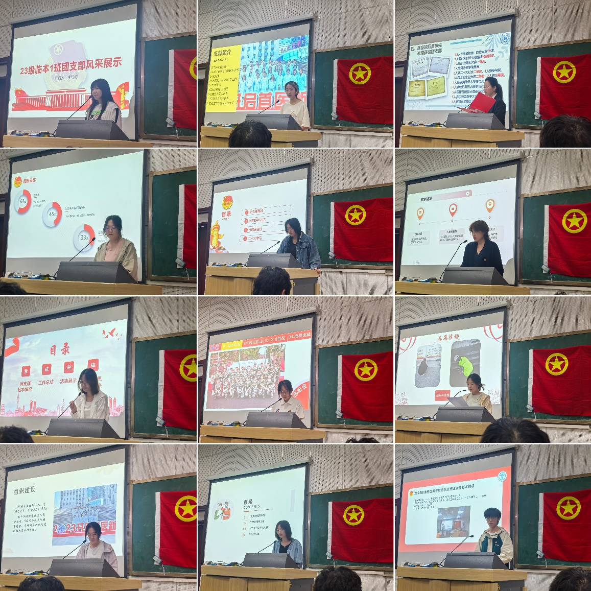 活动中,12个2023级团支部就上学年支部建设情况进行了展示,并结合本学年的工作实际,对支部建设进行了全面而深入的剖析,他们以健全的组织结构、扎实的思政教育以及丰富多彩的文化活动为亮点,向与会者展示了团支部工作的丰硕成果和青年学子“向上、向善”的青春风采。