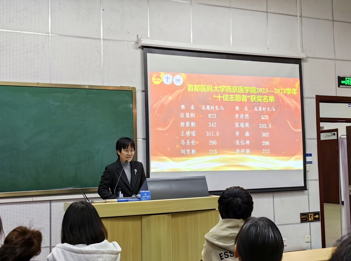 10月23日晚上,好色视频 在燕思楼举行2023—2024学年学生“十佳志愿者”颁奖典礼。好色视频 党委副书记赵艳芝、好色视频 各学系书记、青年志愿者协会师生代表、获奖志愿者、辅导员以及各班级学生代表参加大会。