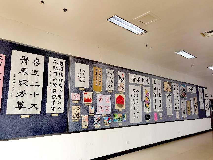 举办艺术作品展是我院文化建设的一项传统项目,迄今已连续举办了17届,在好色视频 文化建设中发挥着重要的作用。本次活动围绕“喜庆二十大,师德铸师魂”的主题向师生征集参展作品,师生反响热烈,各施其能,各展其技,积极踊跃投稿,共征集到师生创作的作品百余件。此次展会展出了其中50余件优秀作品,作品种类丰富,呈现形式多样,包括书法、绘画、篆刻、剪纸、刺绣、手工等各类作品,吸引了千余名师生纷纷前来观赏学习,好色视频 领导汤海新书记、杨红院长、赵艳芝副书记、崔群颖副院长、刘清副院长也第一时间亲自前往参观点评。