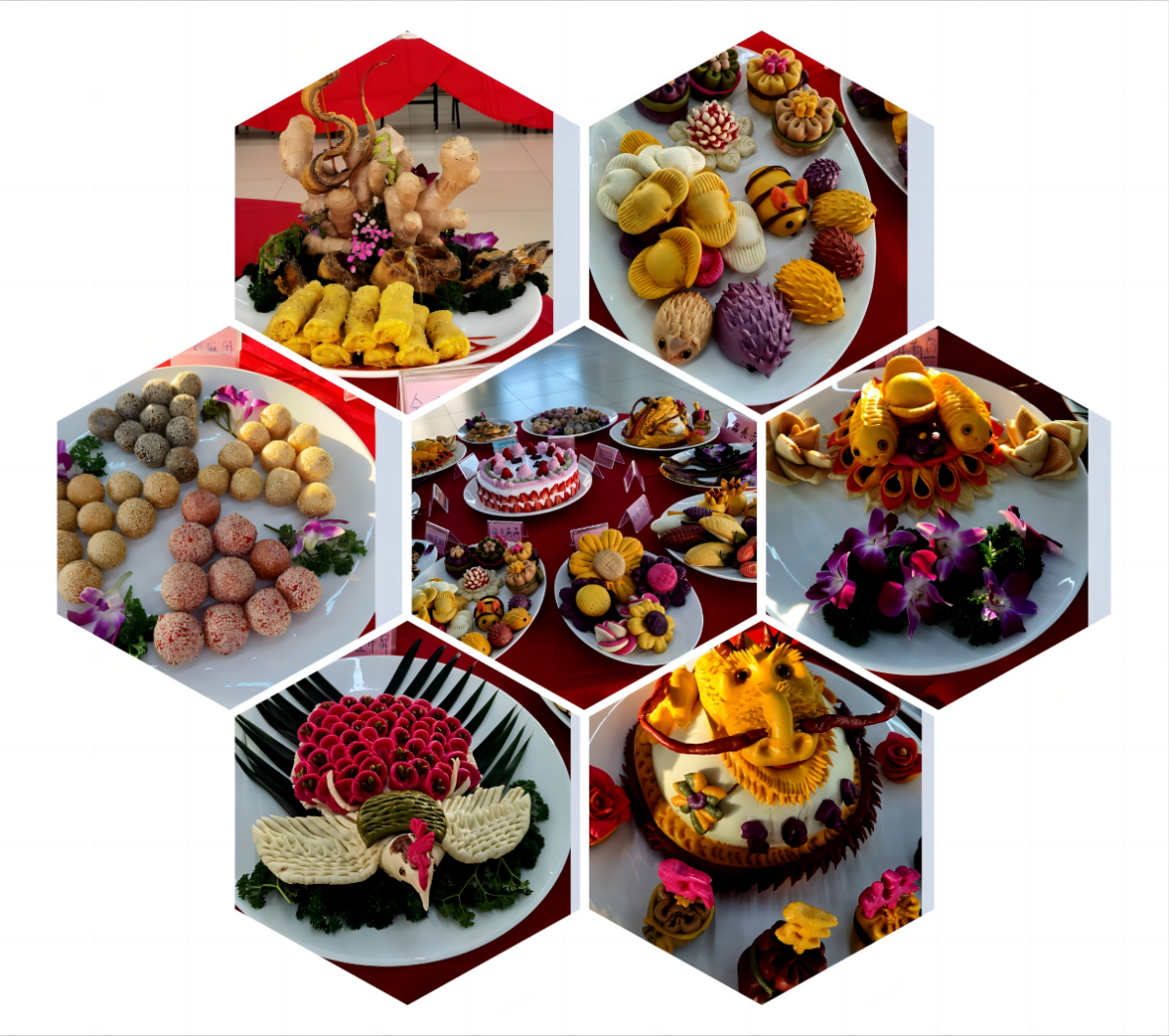 本次大赛分为烹饪组和面点组分别进行比赛。比赛开始后,一道道色香味俱全的菜品和别具匠心的菜名让评委们忍不住一一尝试;创意十足、精致可口、造型美观的面点也吸引了大家赞叹的目光。