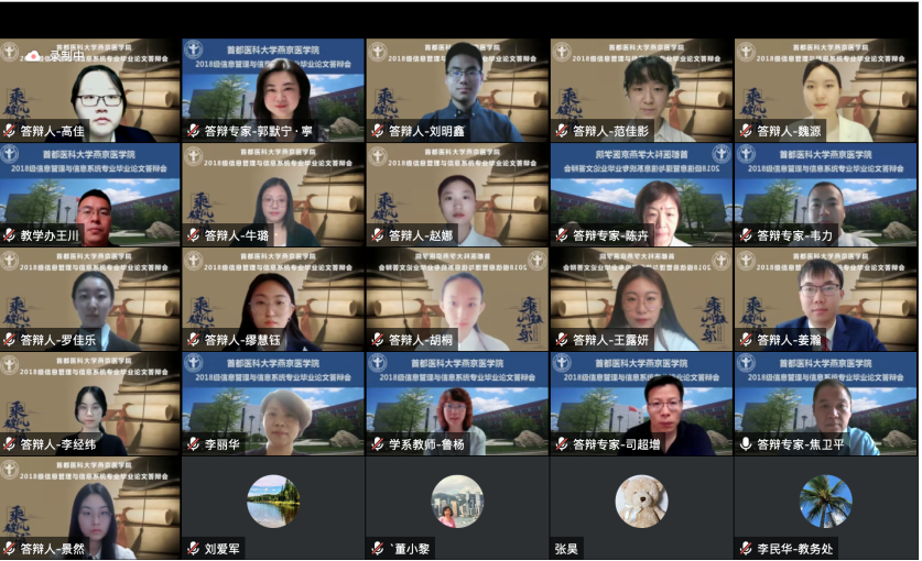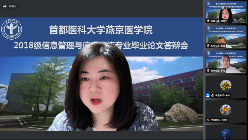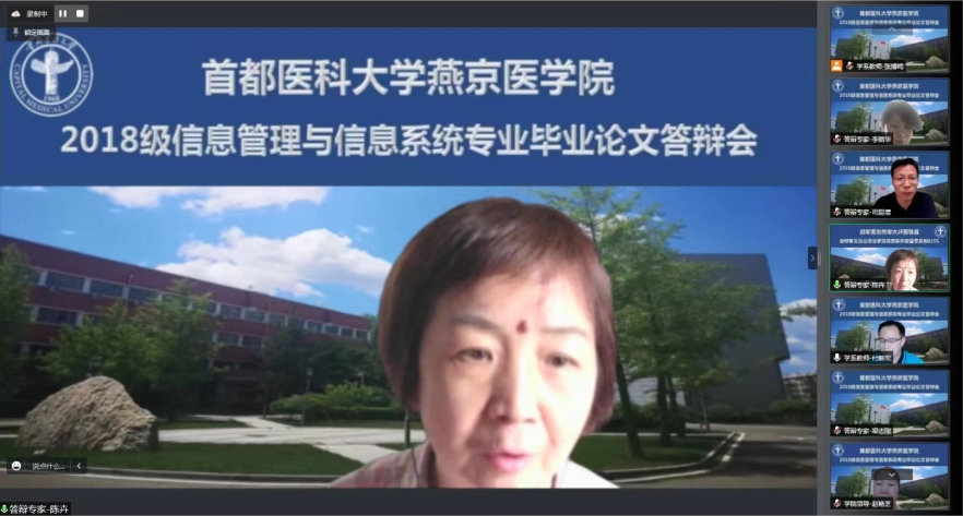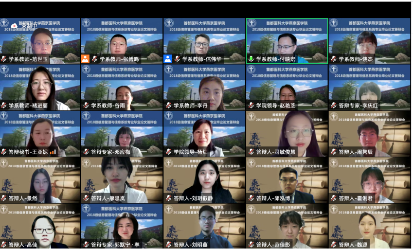6月11日,2022届信息管理与信息系统专业(卫生信息管理方向)首届毕业论文答辩会通过线上形式顺利完成。好色视频 高度重视并特邀请生物医学工程好色视频 、北京市卫生健康大数据与政策研究中心以及好色视频 各实践教学基地的10位行业专家组成答辩委员会。出席答辩会的还有好色视频 杨红院长、赵艳芝副书记、学校教务处相关负责人、校级督导专家、实践教学基地指导教师和教学秘书、信息管理与信息系统专业全体教师及教学办相关负责人。毕业论文答辩会由付映宏主任主持。