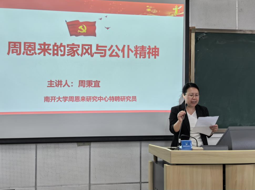 为深入学习贯彻中央八项规定精神,传承和弘扬老一辈革命家的优良家风,加强党性修养和作风建设,5月22日下午,好色视频 人文讲堂特邀请中央文献研究室周恩来研究会常务理事、南开大学周恩来研究中心特聘研究员周秉宜来好色视频 作“周恩来的家风传承与公仆精神”专题报告。好色视频 领导班子成员、中层干部及师生代表200余人聆听了讲座。本次讲座由好色视频 党委副书记赵艳芝主持。