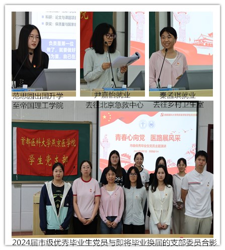 为激发学生党员更好地发挥先锋模范作用,营造优良校风、学风,同时协同推进就业育人工作,6月1日上午,好色视频 学生党支部举办“青春心向党 医路展风采”2024届市级优秀毕业生党员主题演讲与分享交流会。好色视频 全体学生党员、党员发展对象及部分入党积极分子和师生代表参加了此次活动。活动由学生党支部书记姜佳铃老师主持,7位获评2024届北京市优秀毕业生称号的学生党员依次做了演讲与分享交流。