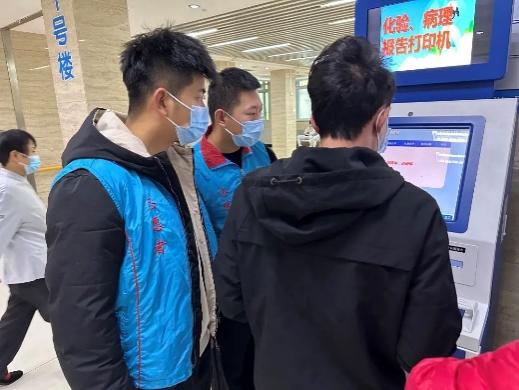 在呼吸系统疾病高发的季节,该班学生利用在大兴区人民医院学习的课余时间,为医院门诊大厅患者提供就医指引、科室介绍、挂号流程、自助机使用、报告单打印、残障人士帮扶等一系列志愿服务,希望通过主动服务,为患者贡献自己的一份力量。