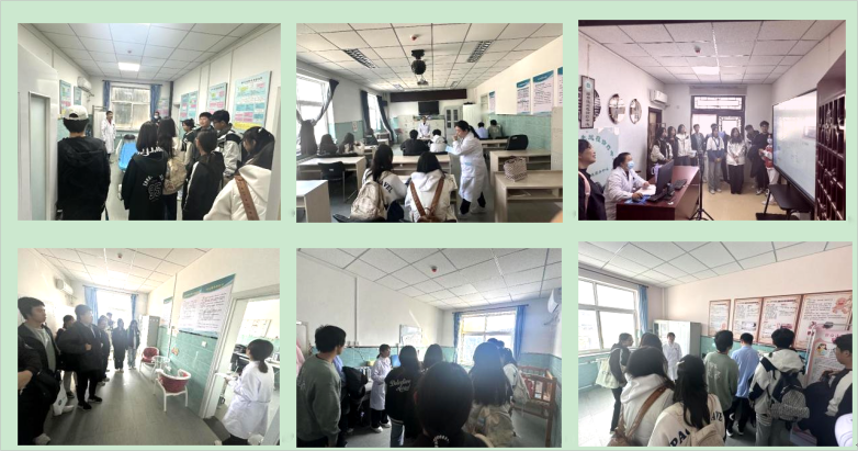 随后,同学们分为3组参观琉璃庙镇卫生服务中心。老师介绍了山区全科诊疗工作开展和全科医生所承担的职责,门诊室、抢救室、护理病房内的基础医疗设施以及预防保健工作的发展过程、工作内容;现场观摩了远程医疗的全过程。琉璃庙社区卫生服务中心的老师们与同学们进行深入交流,耐心地回答了同学们的问题,现场气氛热烈而融洽。