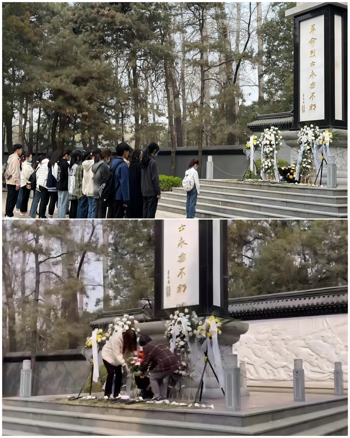 松柏苍翠寄哀思。同学们穿行在墓碑林立的烈士陵园,为79位烈士扫墓。他们中有国共合作时期牺牲的李昆,抗日战争时期牺牲的8位烈士,解放战争时期牺牲的48位烈士,以及建国后牺牲的22位烈士。同学们满怀敬意地默读着烈士们的名字,躬身将手中的白花轻轻地放在烈士墓前,表达继承先烈遗志,沿着先烈足迹勇毅前行,为中国式现代化建设贡献青春力量的坚定意志。