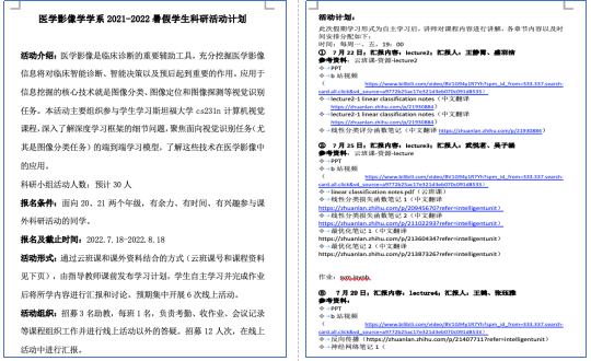医学影像学学系组织2021-2022第二学期暑假学生科创系列活动