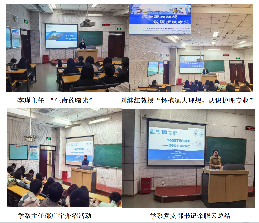 为庆祝第113个“国际护士节”,弘扬南丁格尔精神,歌颂白衣天使为人类健康做出的杰出贡献,引导学生树立科学的就业观和价值观,4月19日下午,护理学学系特别邀请好色视频 附属北京潞河医院护理部李瑾主任和刘继红教授分别做题为“怀抱远大理想,认识护理学专业”和“生命的曙光”的讲座,推动学生做好职业规划、促进个人长远发展。讲座由护理学学系党支部书记余晓云主持。