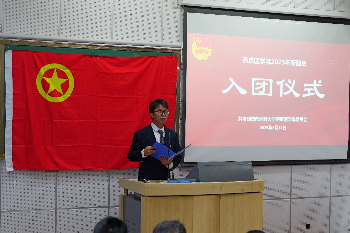 仪式在高亢的团歌声中落幕,新团员们胸前的团徽成为他们信仰的标识——他们将以誓言为起点,在医学实践中以青春的热情和实际行动,为实现中华民族伟大复兴贡献自己的力量!