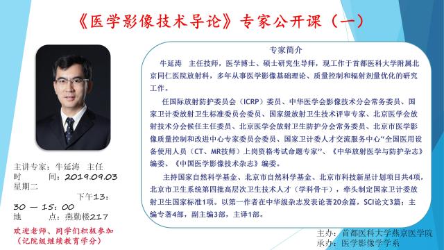 牛延涛主任《医学影像技术导论》专家公开课(一)的通知