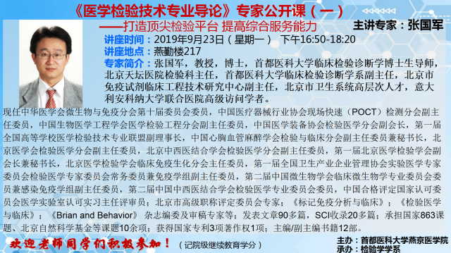 张国军教授《医学检验技术专业导论》专家公开课(一)的通知