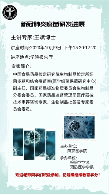 王斌博士“新冠肺炎疫苗研发进展”讲座通知
